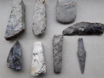 2. Gave - fin samling fra Borre Knob. Bla. miniaturedolk, segl og nakken af en spidsnakket økse.